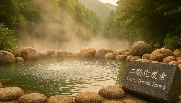二酸化炭素泉とは、温泉1kg当たり1g以上の遊雛炭酸(二酸化炭素)を含む温泉です。