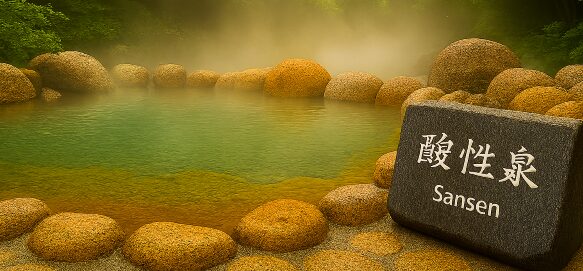酸性泉とは、温泉1kg当たり1mg以上の水素イオンを含む温泉。
